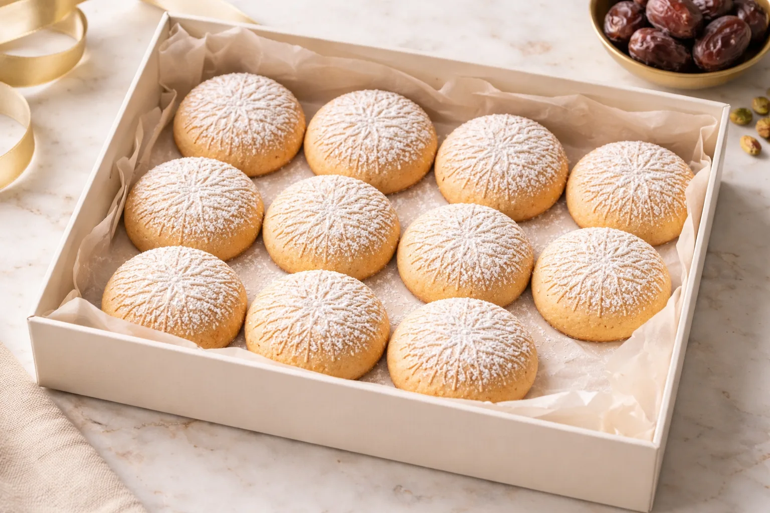 In the Eastern Mediterranean tradition, these are the cookies you bring when you want someone to know you thought about them. A box of 12, each one hand-pressed with a geometric pattern and dusted with sugar — it's a gift that looks considered because it is.