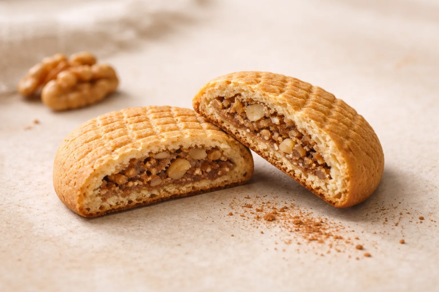 Walnut-filled cookies are the homestyle version of the maamoul — the one families make for themselves, not just for guests. Walnuts are abundant, affordable, and deeply satisfying, and the cinnamon in the filling adds a warmth that makes the whole cookie feel like it belongs in front of a fire with a cup of tea.